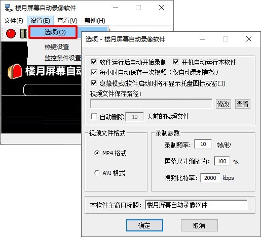 10,本软件主窗口标题:软件标题默认为“楼月屏幕自动录像软件”,如果有需要的话,可以在这里将标题改为别的文字。