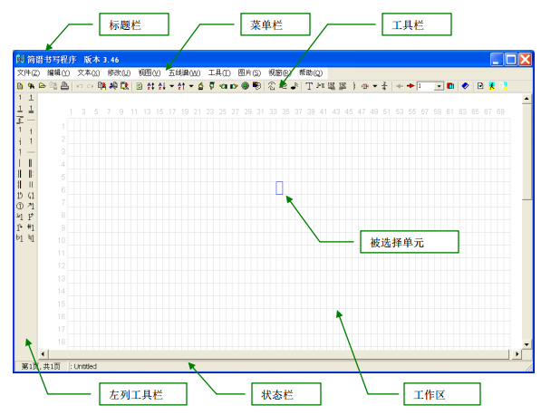 该程序使用标准的 Windows 界面。在窗口的顶端是标题栏,它会显示程序的版本号。