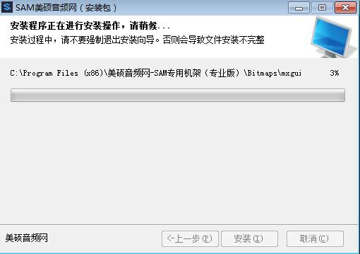 SAM美硕音频网最新版正在安装,耐心等待一下