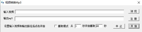 3、操作简单,只需点击浏览按钮设置好输入视频后,点击开始,程序自动在视频目录下转换成原文件名的Mp3文件。