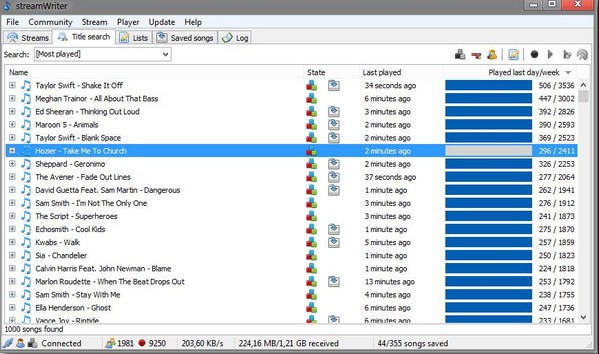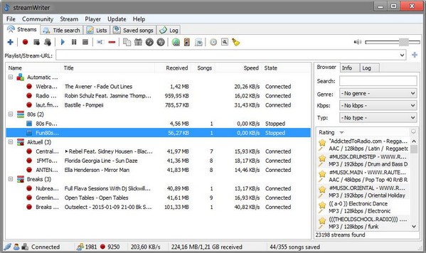 streamWriter正式版是一款简单实用,专业极强的互联网无线电录音机,streamWriter正式版拥有直观的操作界面,其软件能够对网络电台播放内容进行录音,支持应用于网络电台的音乐录制,带静音检测的分轨,具备保存标题的手动剪切功能。