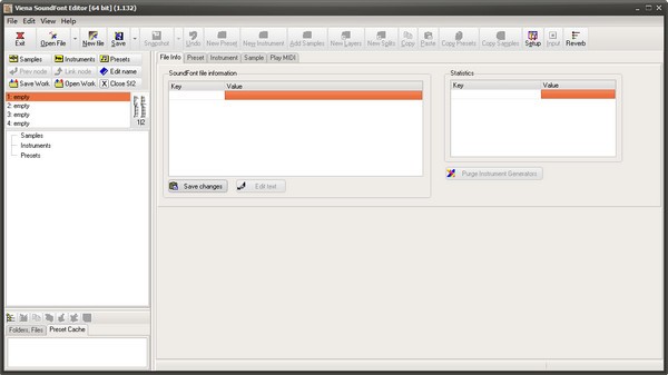 由于它的界面组织良好,与Viena合作不应该造成任何问题。您可以加载现有的SoundFont文件,也可以通过导入和处理多个音频示例来创建新的SoundFont文件。