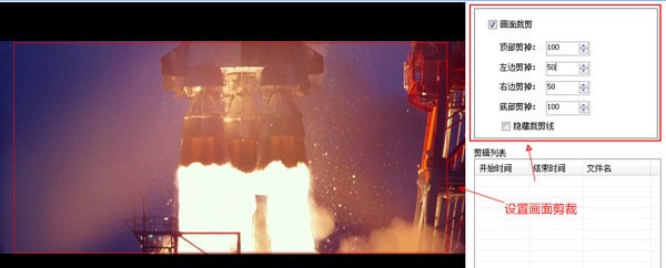 8. 设置视频剪裁,上、下、左、右剪掉多少像素,设置后,右边视频播放区域,可以预览剪裁的画面