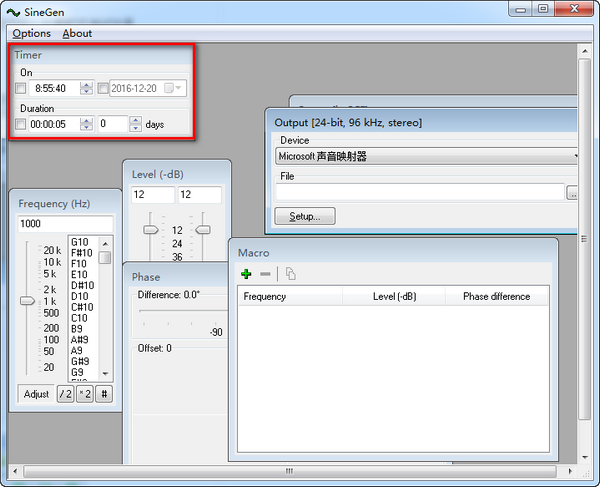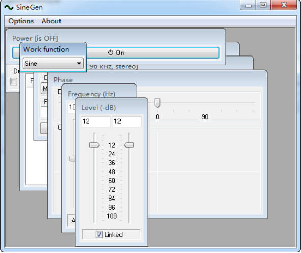 ??1、本软件已经绿化,无需安装,点击“SineGen.exe”即可运行,软件可设置不同的声波类型,点击“work
