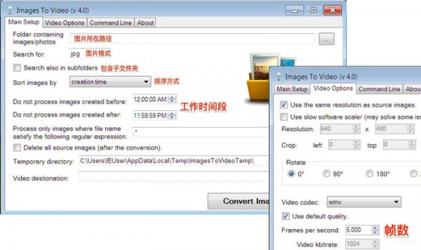 ??Images to Video的使用非常简单,只需要设置好图片所在路径,图片格式(或者适配文件名),排序方式,以及在 Video Options 中设置帧数,就可以导出视频了。