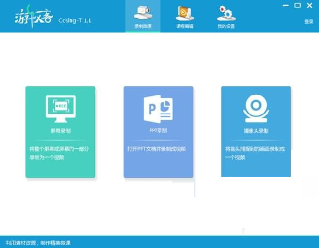 游牧客Ccsing-T制作工具支持录制整个计算机屏幕或指定屏幕区域内的操作、文件、视频等。