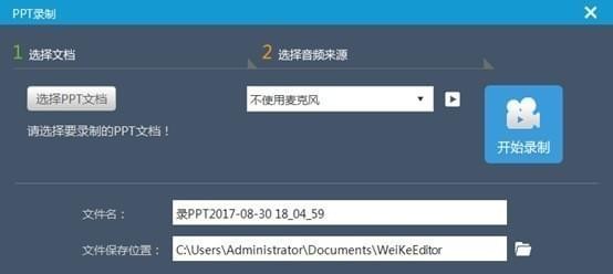 用户在录制PPT视频的时候,需要先选择相应的ppt文件,如需录制讲解声音,可使用内置麦克风或外接音频输入设备,然后根据软件操作提示进行录制。