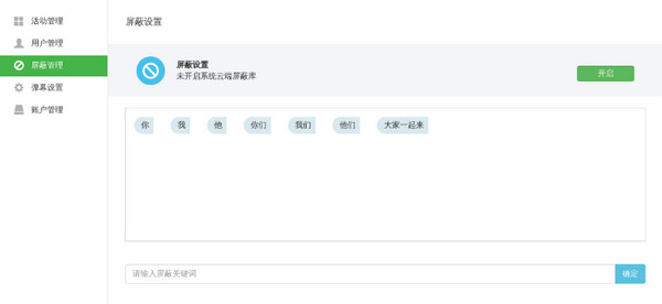 您可以设置屏蔽关键字来对发送的消息进行过滤,也可以选择手动模式来亲自把关。