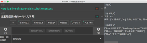 Arctime提供了直观易用的字幕批量翻译辅助工具,来加速字幕翻译的过程。通过翻译助手可以快速的进行人工翻译,也可以让机器通过在线翻译进行快速辅助(查词、翻译整句)。