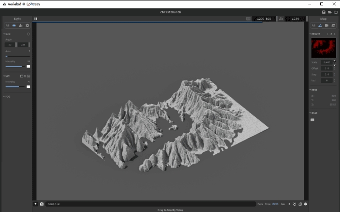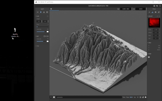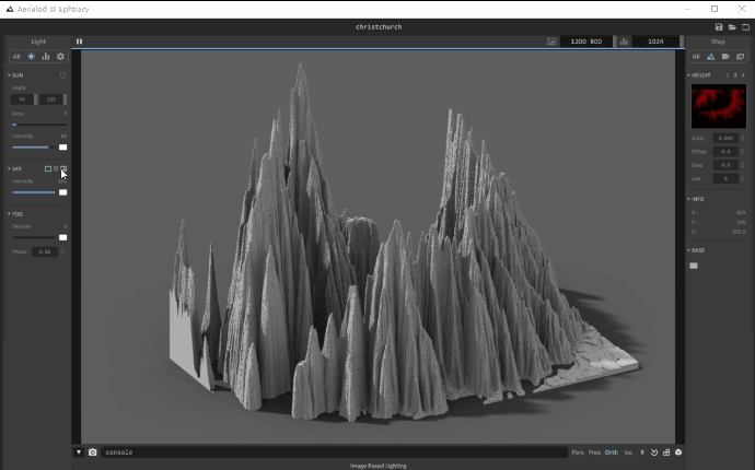 Aerialod官方版是一款功能强大的地形生成软件,Aerialod官方版可以帮你轻松生成各种类型的地形,这款软件可以让不会建模的同学都能轻松创建三维地形图。软件可以渲染真实卫星数据,也可以生成合成高度图,使用HDR渲染,输出最高16K的贴图等等。