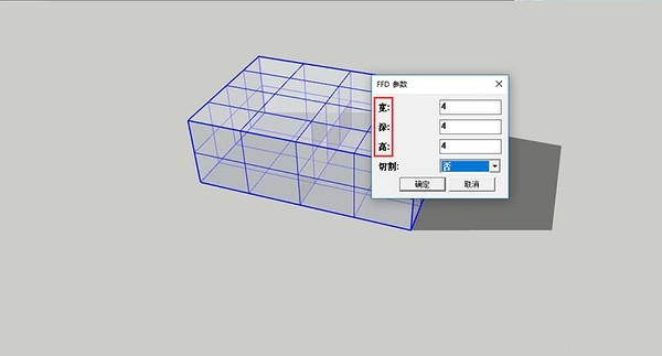 我们创建好一个对象,然后选择NXNFFD就会弹出一个面板,里面可以设置“宽”、“深”、“高”的数量,其实就是设置FFD控制点的数量。