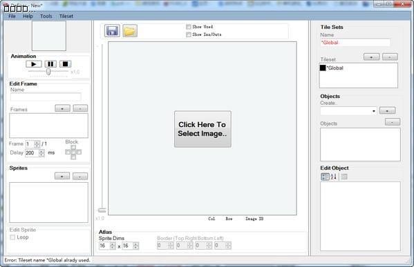 2、转到文件 - >加载地图集。 选择一个PNG或BMP定期间隔的雪碧瓷砖的文件。