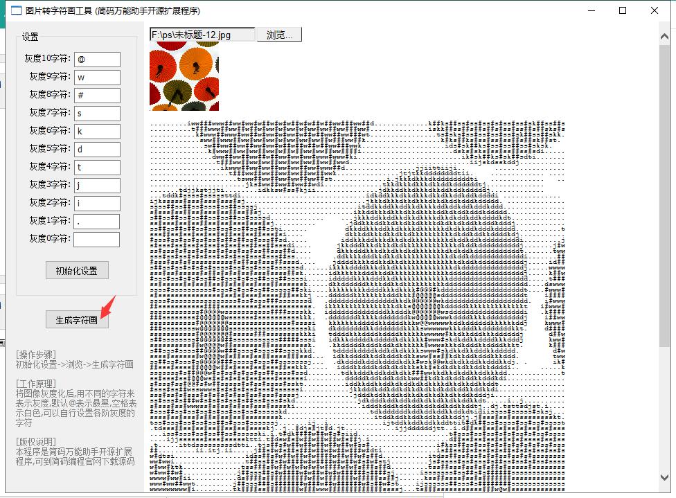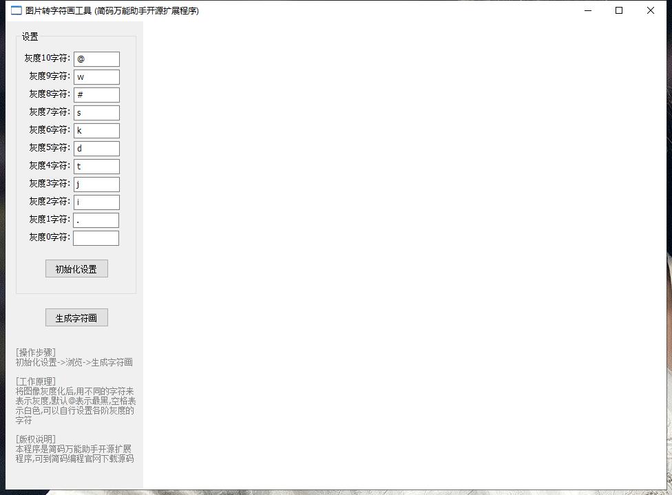 3.图片转字符画工具中文版支持十几种图片转换到字符的选择