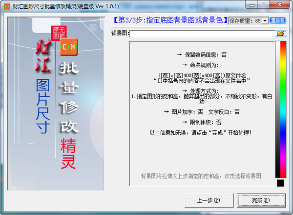 财汇图形尺寸批量修改精灵官方版可多样化批量修改图片的像素尺寸、批量修改处理前后的文件,可限定处理后的文件大小,对原文件零损害,并可自行添加文字后保存。这款软件是实实在在的功能“三合一”:“尺寸更改”、“格式转换”、“文件更名”,而这一切都是批量化的、多种选择性的。