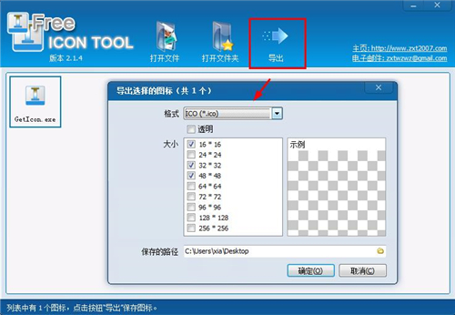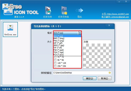 3、支持把图标保存成ico、bmp、png、gif、tif、jpg、tif、psd、tga、pcx格式。