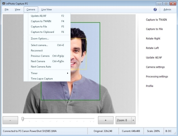 inPhoto Capture PS电脑版可远程控制您的Canon PowerShot相机并将快照捕获到您的PC;