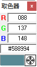 色彩转换器,允许选择调色板中的颜色并显示相应的RGB和十六进制代码(Web格式)。永久置顶从而方便使用!