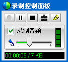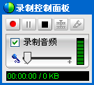 指定文件后,WebEx会出现录制面板(下图1)。上面左3个按钮为:录制、暂停、结束。下面可以设定是否录音,及麦克风音量。