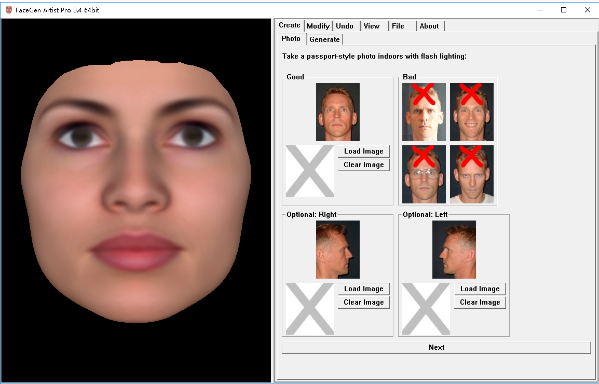 FaceGen Artist Pro正式版是一款轻便小巧、特色便捷的人脸模型创建软件,FaceGen Artist Pro正式版界面提供图片加载案例,按照软件要求加载图片就可以设置转换参数,你可以根据软件提供的多种调整参数修改模型,可以在软件对面部调整,支持设置脸颊周围平滑,设置下巴突出、下巴的凹陷、下巴缩回、下巴浅/深,也可以调整性别、人种、皱纹、痣、毛发,通过这款软件就可以让用户轻松设计3D模型。