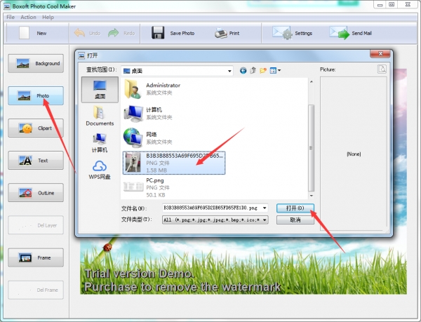 点击photo你可以从你的电脑中选择一张图片作为你要操作的图片