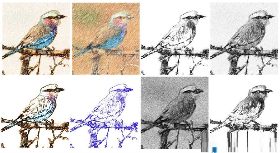 素描抽屉允许生产彩色和黑白草图同样容易。 用彩笔画勾选“彩色素描”框转换成彩色素描照片,或清除框画与石墨铅笔。