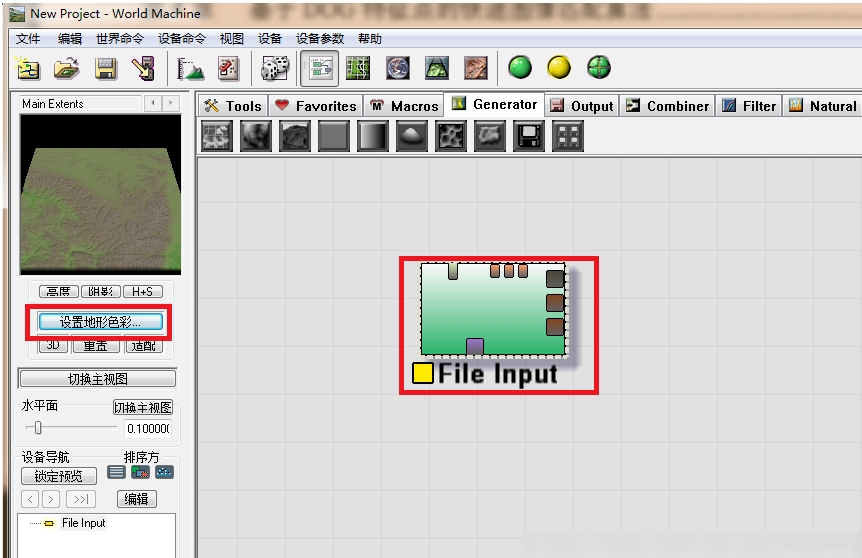 (3)设置完成,单击File Input,在左侧的"设置地形色彩"为"Woodland&mountains"就可以了。