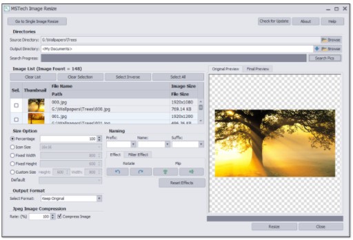 MSTech Image Resize支持最常见的图像格式,如jpeg、bmp、png、tiff等…
