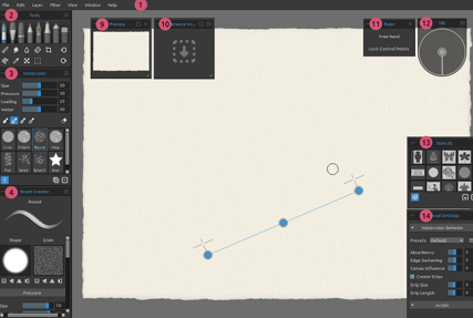 所有画笔,橡皮擦以及混合,涂抹,水和干燥工具都有各种刷子预设。 您可以使用Brush Creator面板创建自己的笔刷预设。