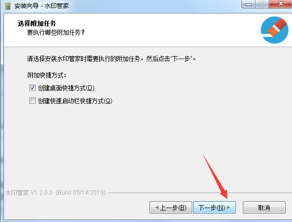 6、选择附加任务,可选择是否创建桌面快捷方式和创建快速启动栏快捷方式,选择完成后点击【下一步】继续。