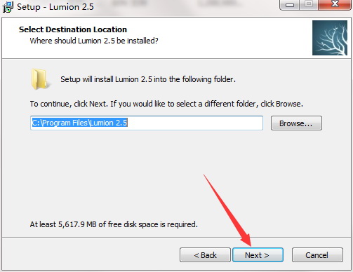 系统默认为C盘,大家可以选择其它盘进行安装,点击next。
