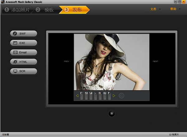 Flash Gallery Classic内置了丰富精美的模版,不需要需具备专业的知识就可以轻松制作出专业效果的数码相册,而且使用简单只需三步即可完成制作。生成的文件格式也多种多样,可以生成Flash动画格式,exe可执行文件格式,html网页格式和Scr屏幕保护模式,不管用哪种方式都可以直接打开运行。并且所有的照片都包含在一个文件里,方便分享给好友。