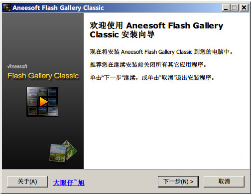 下载完成后,解压文件,运行“Aneesoft Flash Gallery Classic.exe” 这个文件,按照提示点下一步
