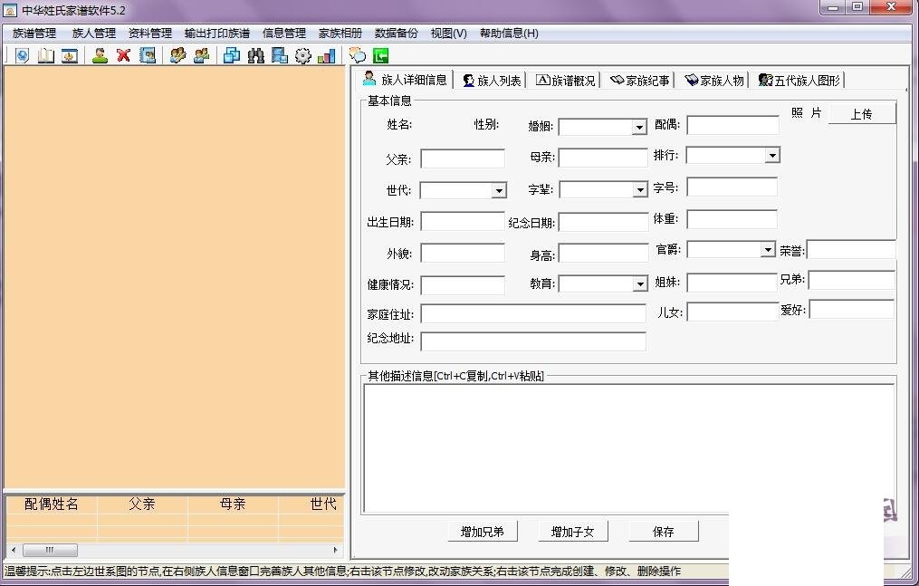 中华姓氏家谱软件官方版是一款界面简洁大方,功能强劲实用的家谱管理软件,中华姓氏家谱软件官方版拥有直观的操作界面,可以管理本家族和其他家族的资料,例可以管理外亲等家族的同步资料,并且可以谱修全国各个姓氏的族谱,对管理姓氏无限制。