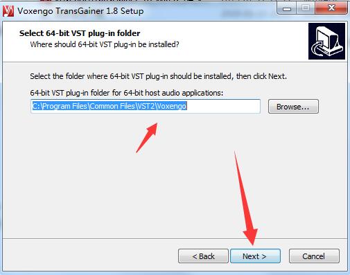4、选择软件安装目录,默认为“C:\Program Files\Vstplugins\Voxengo”,也可以点browse修改,然后点next