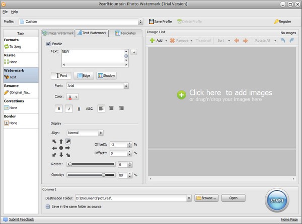 在图像中添加文本水印,可以编辑字体,也可以添加边缘、阴影效果。