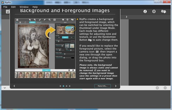 RipPix最新版是一款功能十分强大的照片编辑软件,RipPix最新版是专门为照片添加撕纸效果的工具,提供了20种撕纸风格,55种破旧的纹理,34种老风格供您选择,每种风格都会有不同的滤镜,非常的实用。