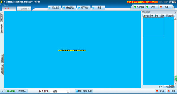 2、如有需要,可对录入的病人信息资料及采集的图像迅速打印报告。