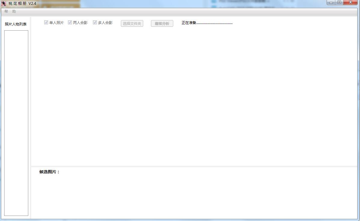 2、第一次运行:选择照片文件夹,然后等待自动分析结束