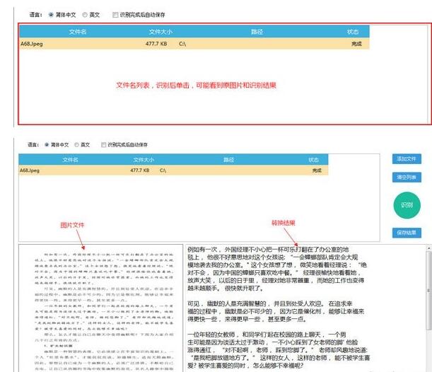 5. 识别完成后,点击列表中的文件,可查看原图和识别结果。