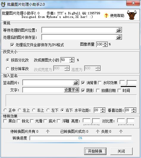 8、批量图片处理小助手软件具有改变图像的大小的功能,支持按百分比修改、改成原图打下的50%