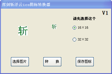 挥剑斩浮云ico图标转换器官方版是一款小巧强大的图标转换工具,可以将图片转换成ICO图标,添加图片前必须先选择转换格式的大小。挥剑斩浮云ico图标转换器官方版可以把图片转换16 x 16、32 x 32格式的图标。