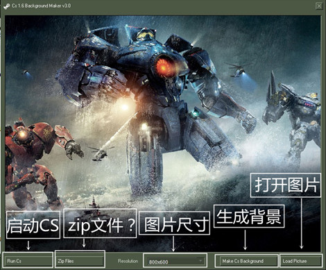 CS背景制作工具官方版是一款简单易用的游戏背景制作小工具,CS背景制作工具官方版只改变CS1.6背景,选择你想要的图片,非常简单。相信玩过CS的玩家都知道CS的背景其实做得比较粗糙,我们甚至可以利用这款工具制作一个自己喜欢的CS1.6游戏背景。