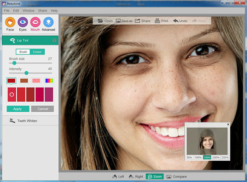 ??Beautune官方版是一款快捷方便、功能非常强大的照片美容软件,这款软件堪称外国的美图秀秀,不仅绿色小巧,而且使用简单方便,虽然目前这款软件爱你只有英文版,但是界面上的美化功能大同小异,即使没有中文也能知道大概的功能,爱美的妹子们快来下载试试吧!