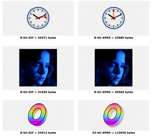 因此,在MNG上,PNG的开发组并没有下大功夫。不过,Mozilla依然乐此不彼的想要用动态的PNG(APNG)来取代GIF成为下一代动态图的标准。