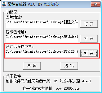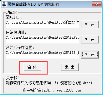 图种合成器官方版是一款体积小巧,而且功能完备的图片文件合成工具,它可以帮助你将压缩文件、bt文件、文本信息、html信息等文件隐藏到图片中,合成后电脑上只会显示图片,不会显示文件,只用有压缩软件打开合成后的图片才会显示文件。