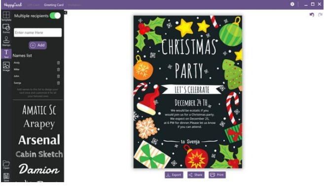 邀请卡一旦创建,就可以发送给许多不同的客人。使用HappyCard,名称会根据您的列表而更改,并且会为每张卡正确导出。