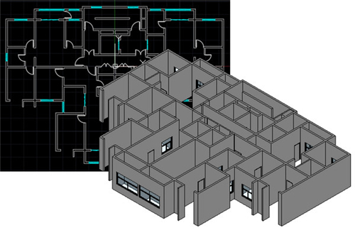 可以将DWG文件中的二维图线、文本、填充、标注对象进行自动化分析识别,快速转换成Revit建筑模型对象,翻模速度快,准确率高。