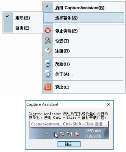 默认热键来激活捕捉助理是:CTRL + SHIFT。只要按下它,选择任何文本,点击任何单词或密码,请选择屏幕上的任何地方。之后你会释放鼠标左键 – 拍摄助理主菜单就会出现。