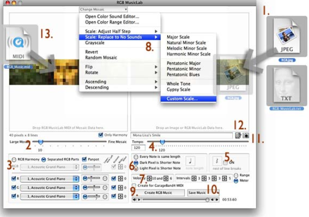 RGB MusicLab是款很出色的一款小工具软件。RGB MusicLab可以帮助我们对一张图片添加上一些我们想要的音乐,使用也是极其的方便简单。