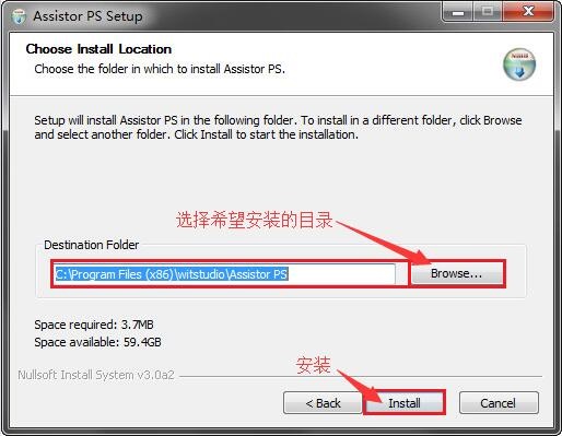 2、选择希望安装的目录确认后点击安装按钮开始安装